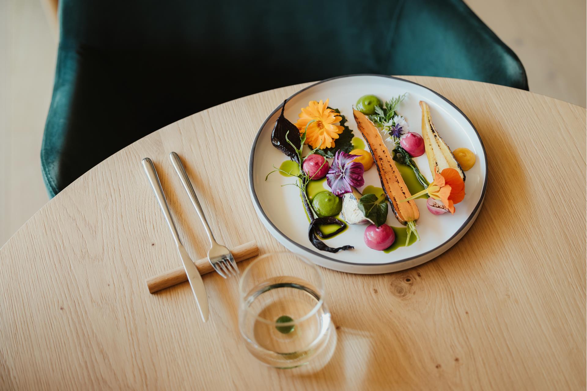 Our young kitchen team uses only 100% organic ingredients because it recognises and values their quality. What makes our cuisine special is that, during the summer months, we use mainly vegetables from our own organic garden and transform them into culinary highlights.